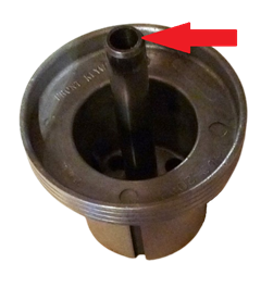 4) Après avoir déposé les 4 vis de la chambre à vide (cloche) la retirer délicatement et verticalement (sans l'incliner), tout en évitant que le boisseau ne sorte en même temps, ce qui risquerait d'endommager l'aiguille en cas de chute.