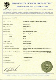 Si le vendeur ne possède que la carte grise, vous devrez vous contenter des informations minimales qu'elle fournit, notamment la date de première mise en circulation, Cependant, cette date n'est pas toujours celle de la fabrication. Avec le numéro de châssis, il est possible de retracer l'histoire du véhicule en demandant un certificat d'héritage auprès de l'Héritage Motor Center à Gaydon, en Angleterre. Ce document, obtenu moyennant un coût modique et quelques semaines d'attente, contient des données précieuses : date de fabrication, couleur d'origine, équipement, numéros de moteur, de carrosserie et pays de destination.