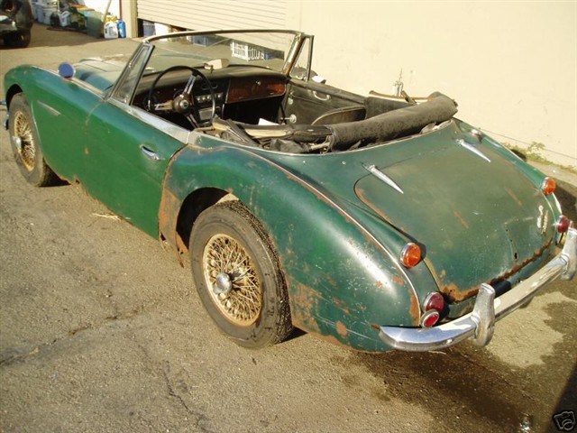 La rouille est le pire ennemi des anciennes en général. La carrosserie des Austin-Healey combine des ailes en acier jouxtant des panneaux en aluminium, séparés par un jonc pour limiter l’électrolyse. A l'origine, toute la carrosserie était en aluminium, matériaux doux qui ne supportait pas la pression excercée par les sangles, lors du chargement sur bateaux, à l'aide de grues portuaires.