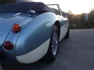 À sa sortie d’usine et selon le certificat d'héritage du véhicule, cette Healey arborait la teinte emblématique British Racing Green. Lors de sa restauration, ce coloris fut remplacé par le duo élégant Healey Ice Blue / Ivory White, une combinaison prisée par les amateurs du modèle. Cet "écart" historique ne manquera pas de faire débat parmi les puristes. Pourtant, il était courant à l’époque pour certains concessionnaires, de repeindre les véhicules selon les désirs des clients, surtout lorsque la couleur souhaitée n’était pas disponible en stock.