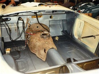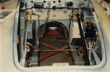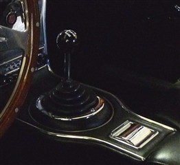 En haut à droite, une modification empruntée à MG, qui assemblait les Austin-Healey à Abingdon, entoure désormais le levier de vitesse d’un soufflet de MGB, plus enveloppant, fixé à la console par un enjoliveur chromé, offrant une esthétique supérieure à l’original.