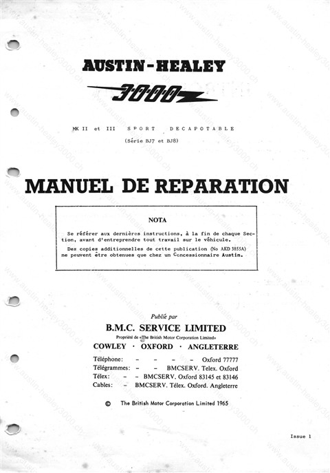 Manuel et publicités A-H 3000 MK II et III Sport décapotable